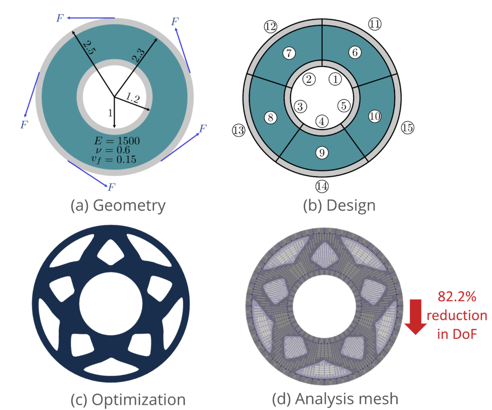 - Continuous Density: Because NURBS basis functions are C^k continuous (smoothly changing), the material density varies smoothly across the design domain. This naturally eliminates checkerboarding without needing complex artificial filters.