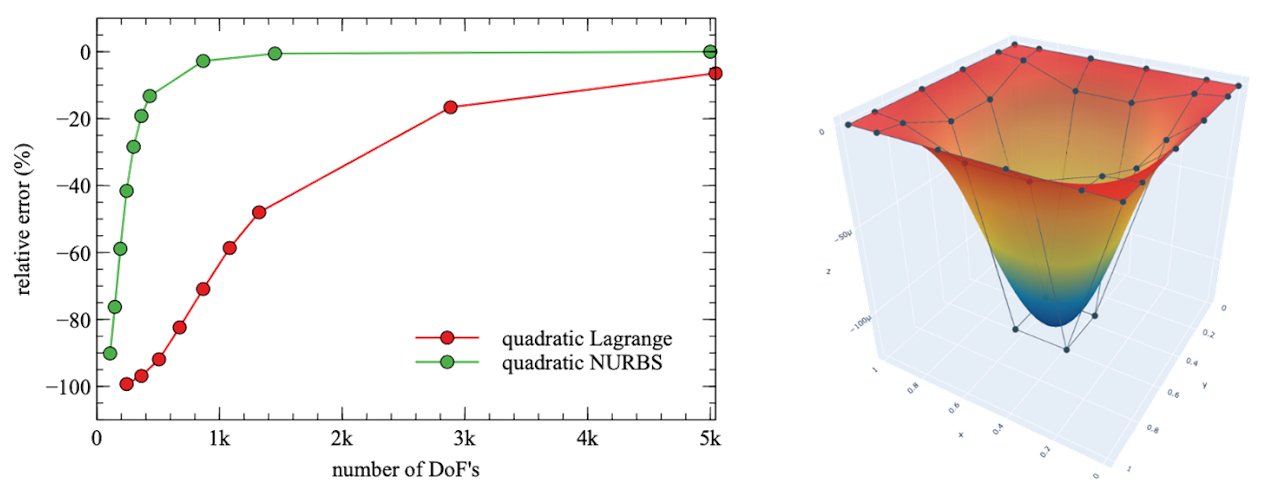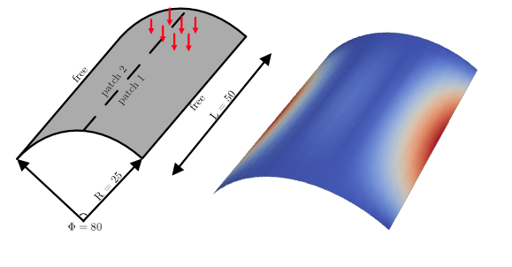 - Kirchhoff-Love Plates/Shells: Using the C^1 or higher continuity of splines to solve thin-shell problems without requiring rotational degrees of freedom at the nodes.