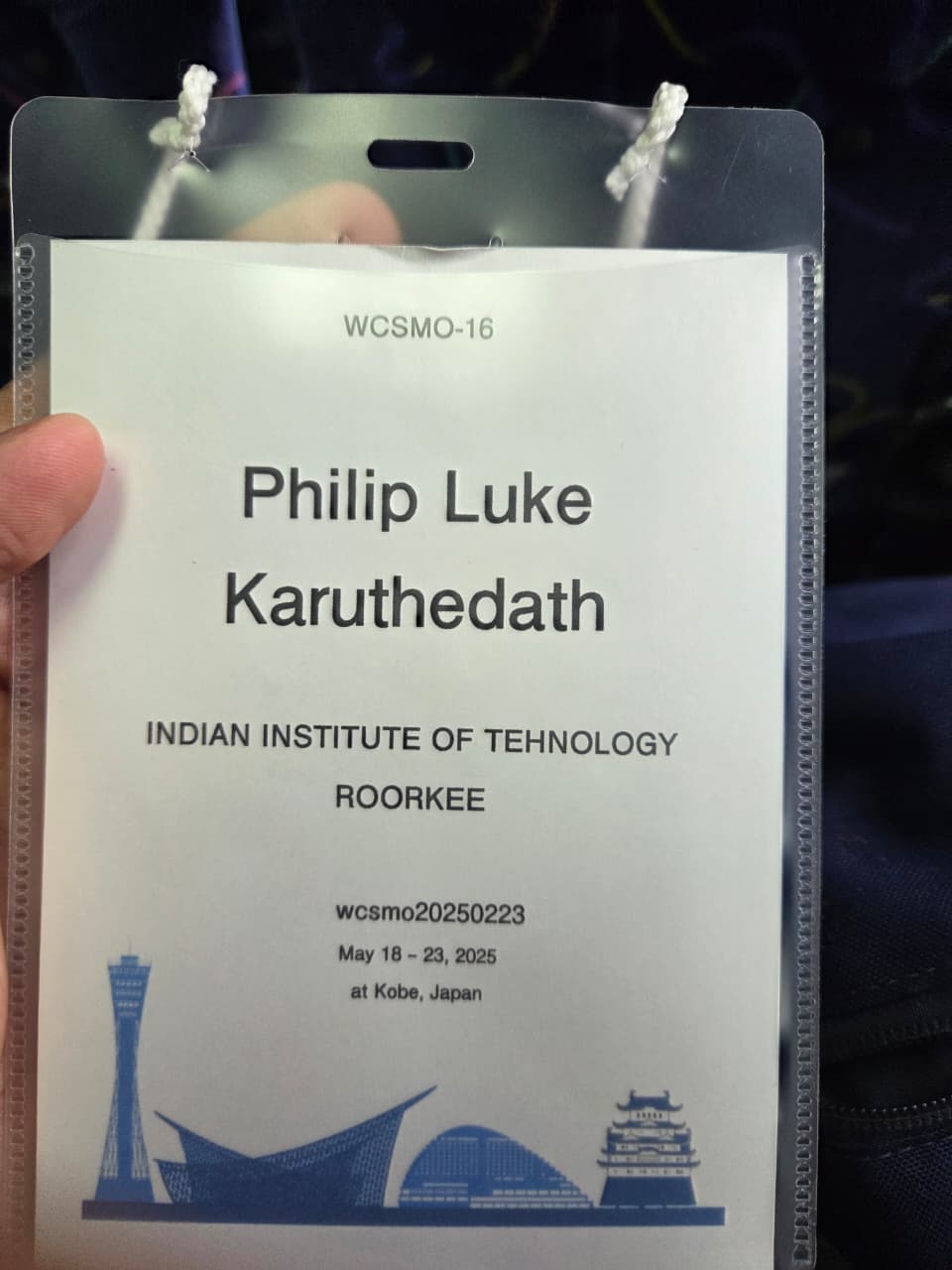 I had the opportunity to present my research at the 16th World Congress on Structural and Multidisciplinary Optimization (WCSMO 2025), held in Kobe, Japan from May 18-23, 2025. Had the opportunity to meet Dr. Ole Sigmund again and also many other pinoeers of structural optimization.