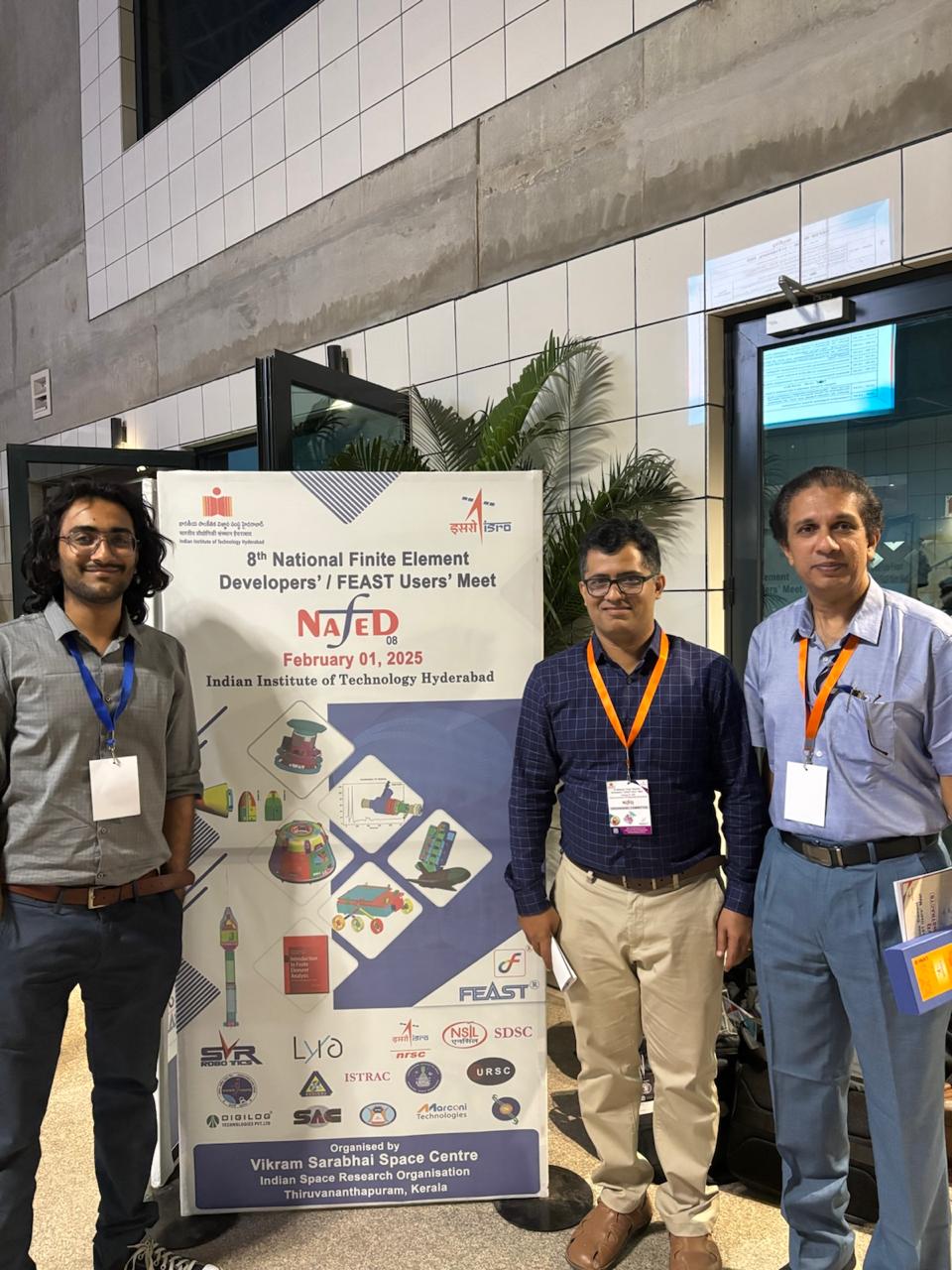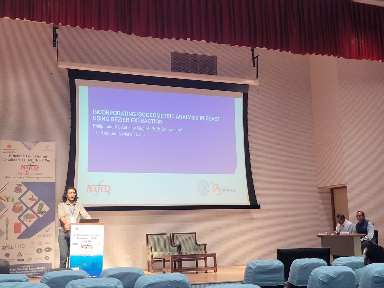 I had the opportunity to present my research and proposal at the National Finite Element Developer’s meet (NAFED 2025) held at IIT Hyderabad. This was organized by the VSSC center of Indian Space Research Organization (ISRO), as part of advancing and promoting FEAST - their structural analysis software. My presentation was on a proposal on how to implement an Isogeometric analysis (IGA) module on FEAST.